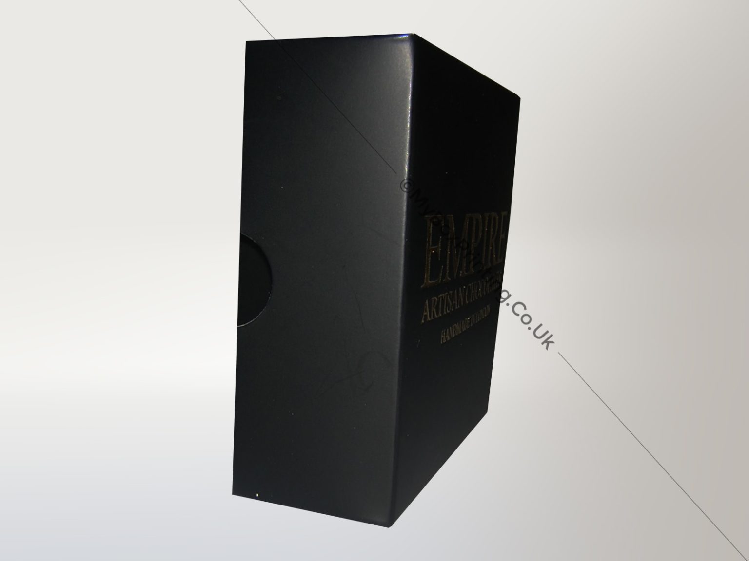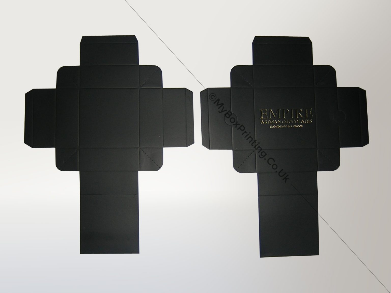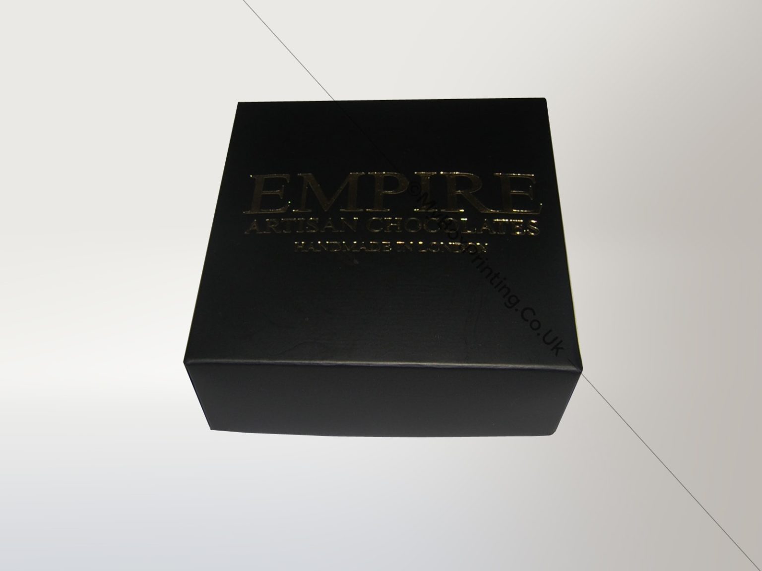 Empire Artisan Chocolates is a rising brand of hand painted chocolates based in London. My Box printing is proud to supply branded chocolate boxes for empire. These two piece style boxes were made with 400gsm bux board and featured one colour printing with gold foiling and matte lamination.