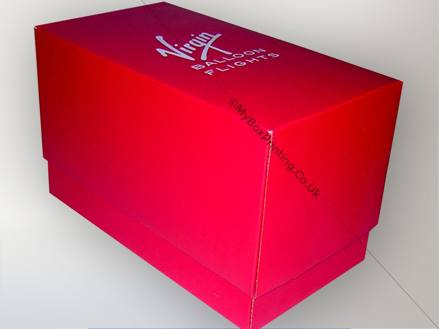 Virgin wanted us to make them gift boxes for their clients. We made two pieced, matt laminated corrugated Kraft gift boxes for them.