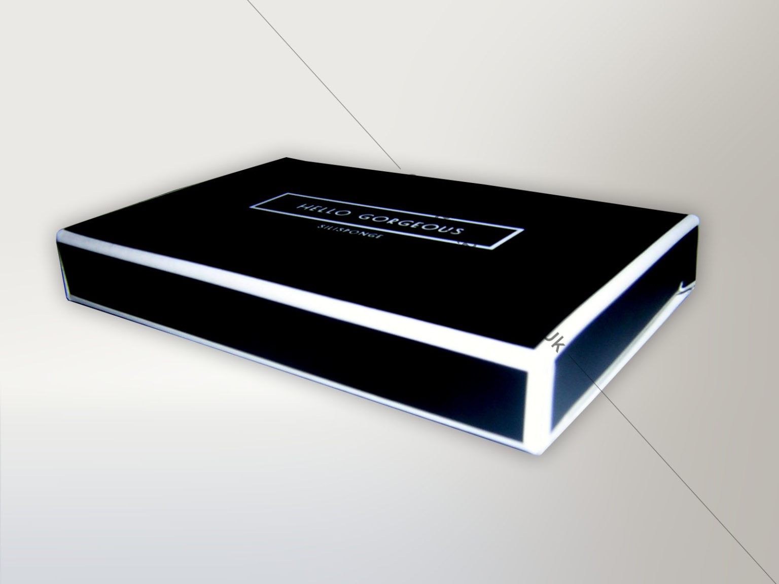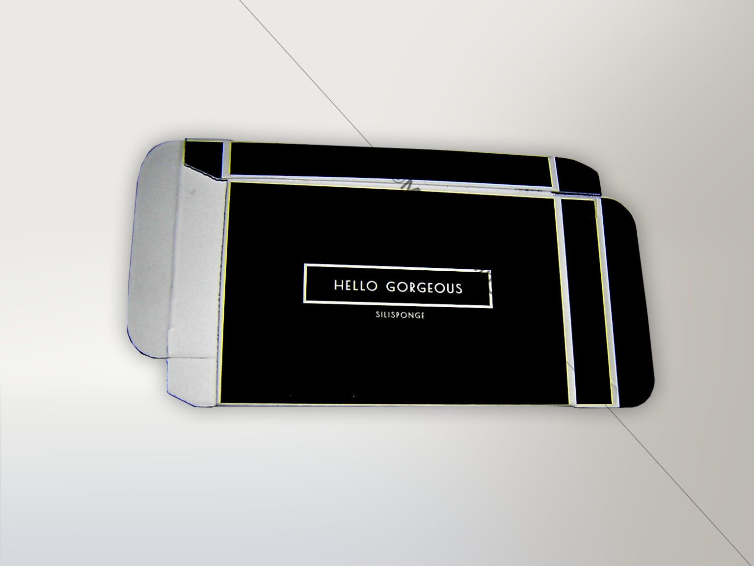 Hello Gorgeous gave us another job to make custom printed makeup sponge boxes for their brand. We used 350gsm silk card and did printing in one colour with gloss lamination.
